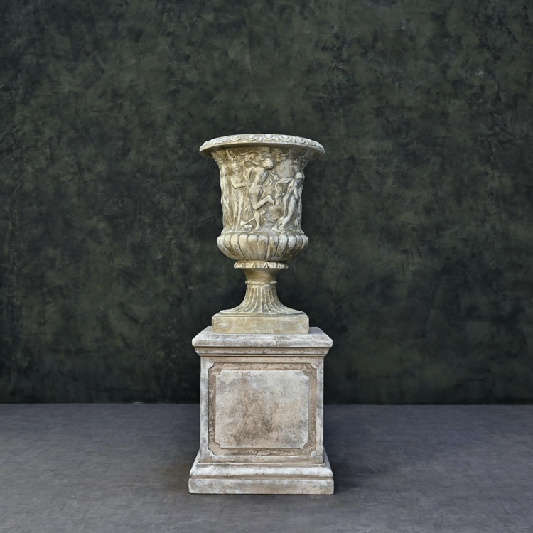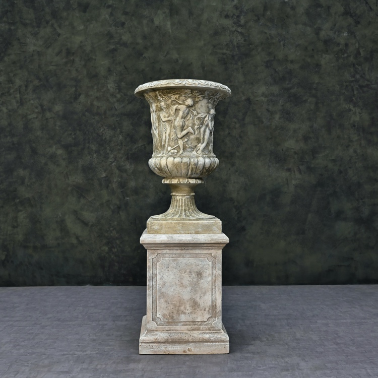 Introducing the Palmbrokers Stone Painted Pottenham Medici Urns – the epitome of classic elegance for weddings, film productions, and noteworthy occasions.