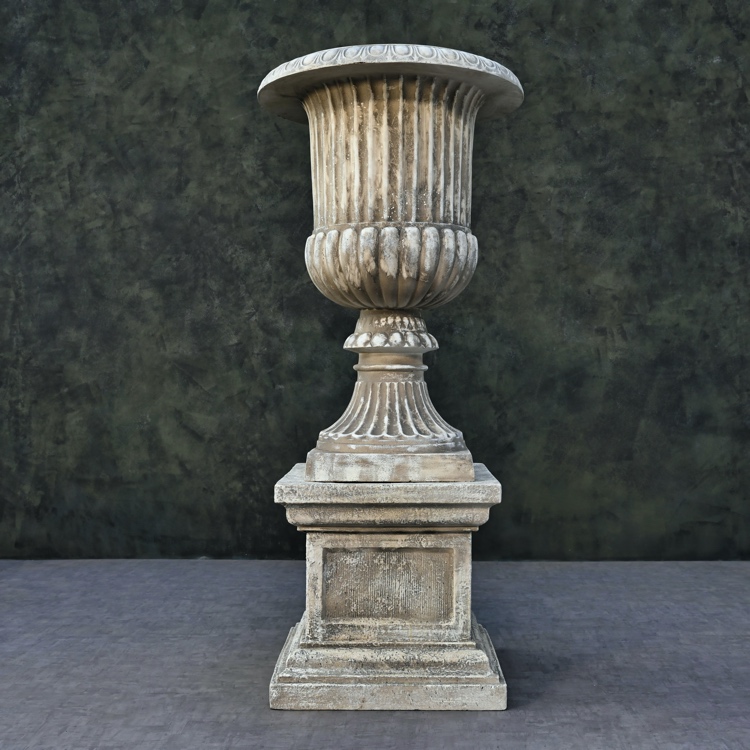 Our Chatsworth Fluted Urn is the perfect classic-inspired piece, this charming stone painted fiberglass urn can be left empty or used to hold flowers or greenery.