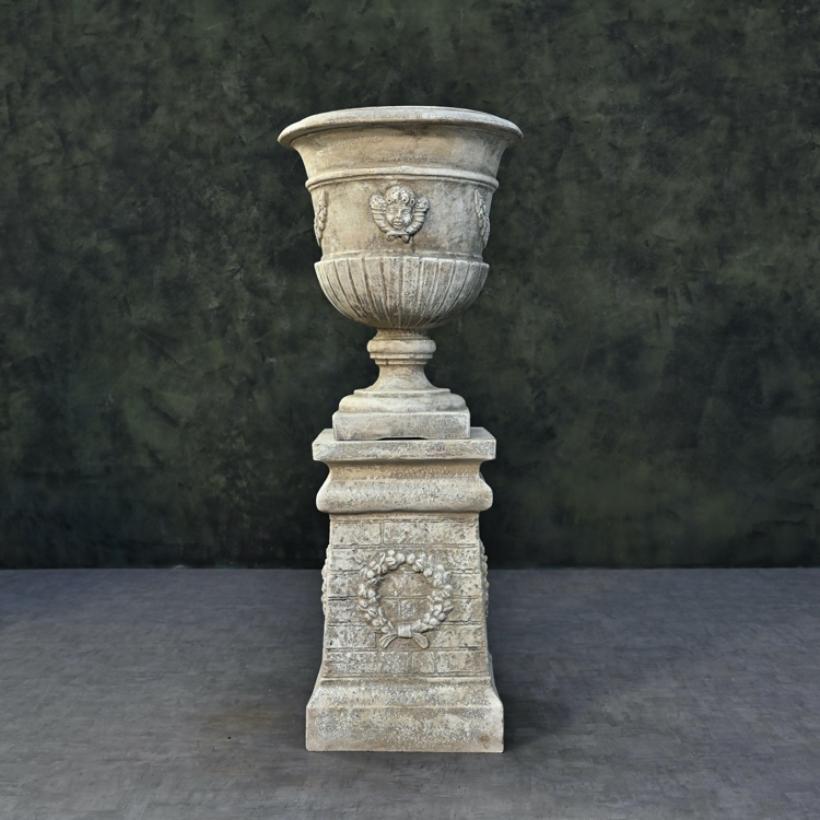 Introducing the Palmbrokers Stone Painted Wentworth Angel Urns – the epitome of classic elegance for weddings, film productions, and noteworthy occasions.